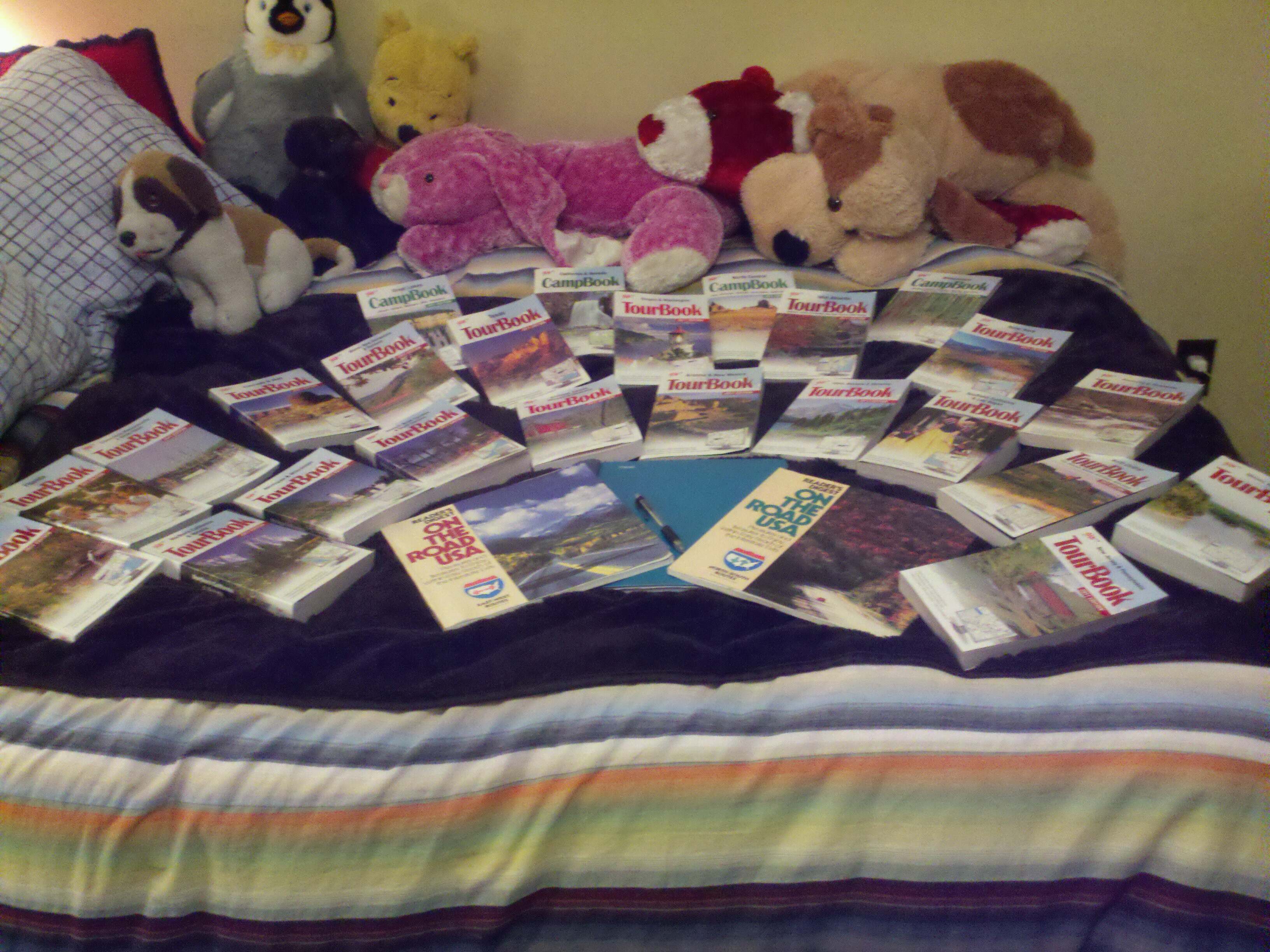 So, here I am, more excited than a 4-year-old at Christmas, looking through these Reader’s Digest books and I realize I NEED more “reference materials”. Thank the Lord for AAA.com!! I hop on that website and order every TourBook and CampBook, you never know when you’re gonna want to sleep in a tent for the night and you wanna know a reputable place, for the continental US.