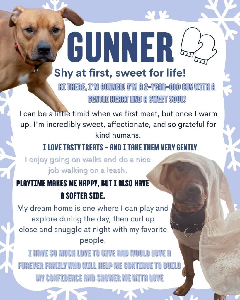 Hi there, I’m Gunner! I’m a 2-year-old guy with a gentle heart and a sweet soul!